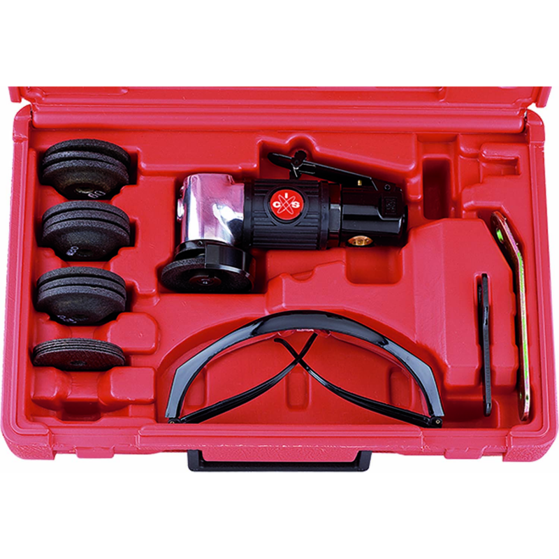 KIT MINI DESBARBADORA-AMOLADORA, DISCO DE 50MM, CONEXION DE ENTRADA DE AIRE 1/4", VELOCIDAD DE VACIO 20.000RPM, PRESION DE TRABAJO 6.2 BAR, CONSUMO DE AIRE 113L/MIN, LONGITUD 133MM, PESO 0.5KG, EN ESTUCHE CON GAFAS PROTECTORAS Y DISCOS DE DESBARBAR. DISPONIBLE TAMBIEN DISCO DE CORTE 50MM.