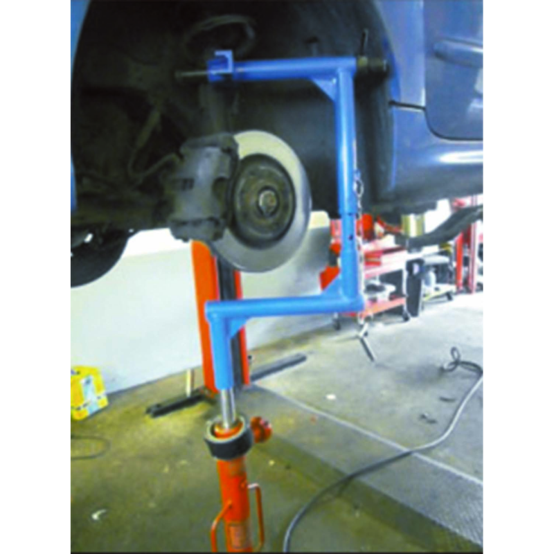 FACILITA EL TRTABAJO DE FORMA FACIL Y RAPIDA PARA AUTOMOVILES SITUADOS SOBRE UN ELEVADOR, DEJANDO LAS RUEDAS LIBRES, PODEMOS ALZAR EL PUENTE DE LA SUSPENSION TIPO MAC-PHERSON (DONDE EL BUJE PUEDE SER SEPARADO DE SU SOPORTE) SIN TENER QUE DESMONTAR LA ROTULA Y EL EJE DE TRANSMISION. SE MONTA EN LA PARTE SUPERIOR DEL SOPORTE DEL GATO HIDRAULICO. MANGUITOS DISPONIBLES PARA FIJAR EN LOS SOPORTES DEL GATO HIDRAULICO 22MM. Y 24MM. MARCO SUPERIOR AJUSTABLE Y HACE POSIBLE SU ELEVACION DE FORMA SEGURA.