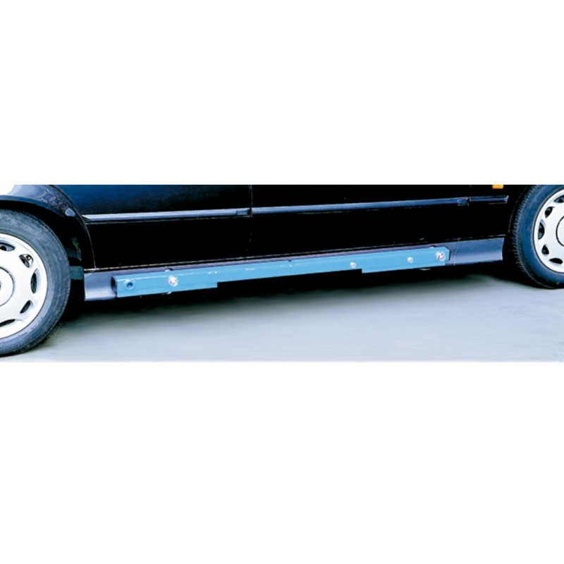 Versátil útil para adaptación de taloneras para vehículos de las marcas Mercedes Benz y BMW. Se regula de forma que se puede adaptar a distintos modelos. Una vez montado, permite sujetar la carrocería al banco de tiro o bien a la escuadra para poder efectuar la reparación de la misma. Es muy fácil de utilizar ya que con los mismos bulones de sujeción que dotan al aparato, éstos se montan en los agujeros de debajo de la carrocería.