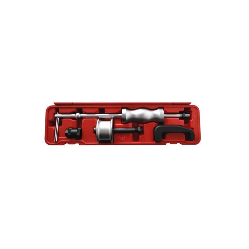 Para extraer inyectores common rail sin tener que desmontar la culata. Aplicable a los motores CDI Mercedes-Benz 611.612.613 etc. • especialmente adecuado para los espacios limitados debido a la cubierta culata • contenidos: 1 extractor de impacto 1 inyector externo con gancho 1 adapter-roscas internas. Junto con impacto extractor. 1 martillo deslizante
