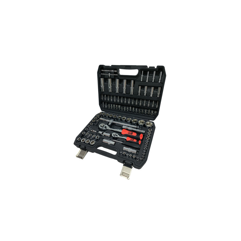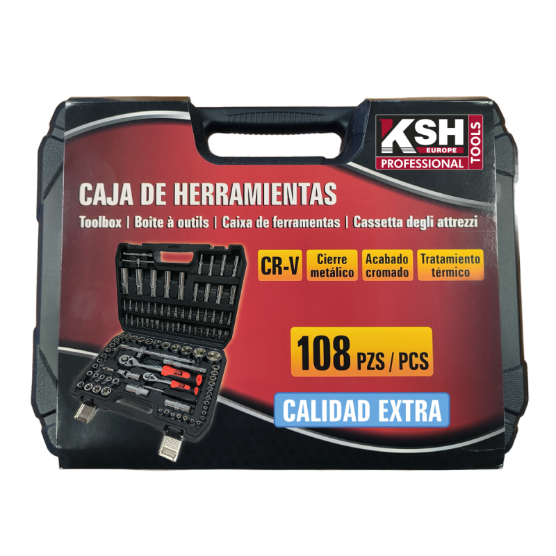 JUEGO AUTOCLE 108 PIEZAS CALIDAD EXTRA CIERRE METALICO ACABADO CROMADO