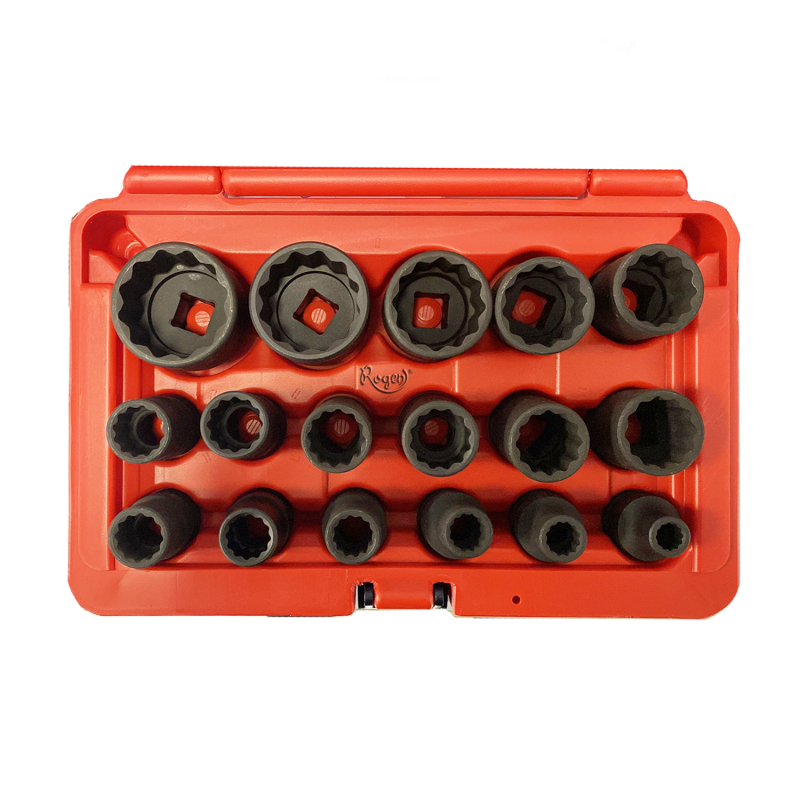 JUEGO PUNTAS POLIGONALES(12 CARAS) IMPACTO CONEXION 1/2", 17 PIEZAS