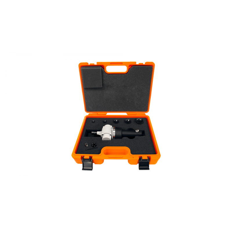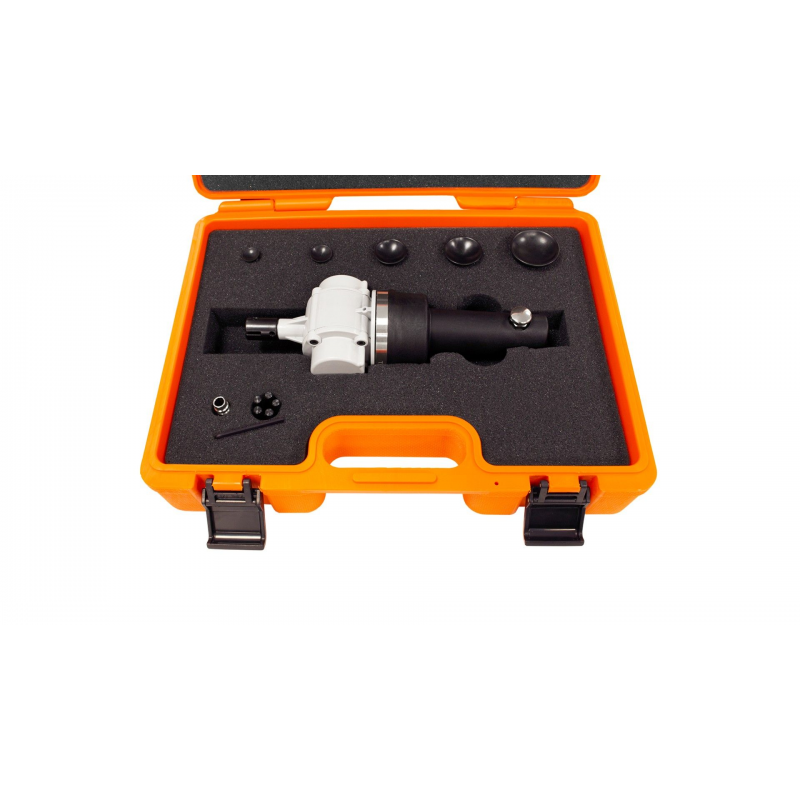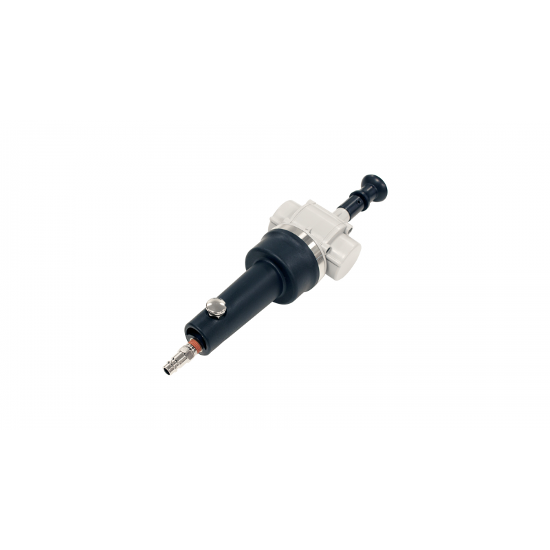 Herramienta de accionamiento neumático para la molienda de los asientos de válvulas de 1/4 "de entrada de aire, 5600 rpm, entrada de aire 1/4", presión máxima del aire 90 PSI (6,3 kg / cm2), presión de trabajo de 6 bares, suministrado con tapones de goma 20/30/35 y 45 mm, tapas de repuesto disponibles.